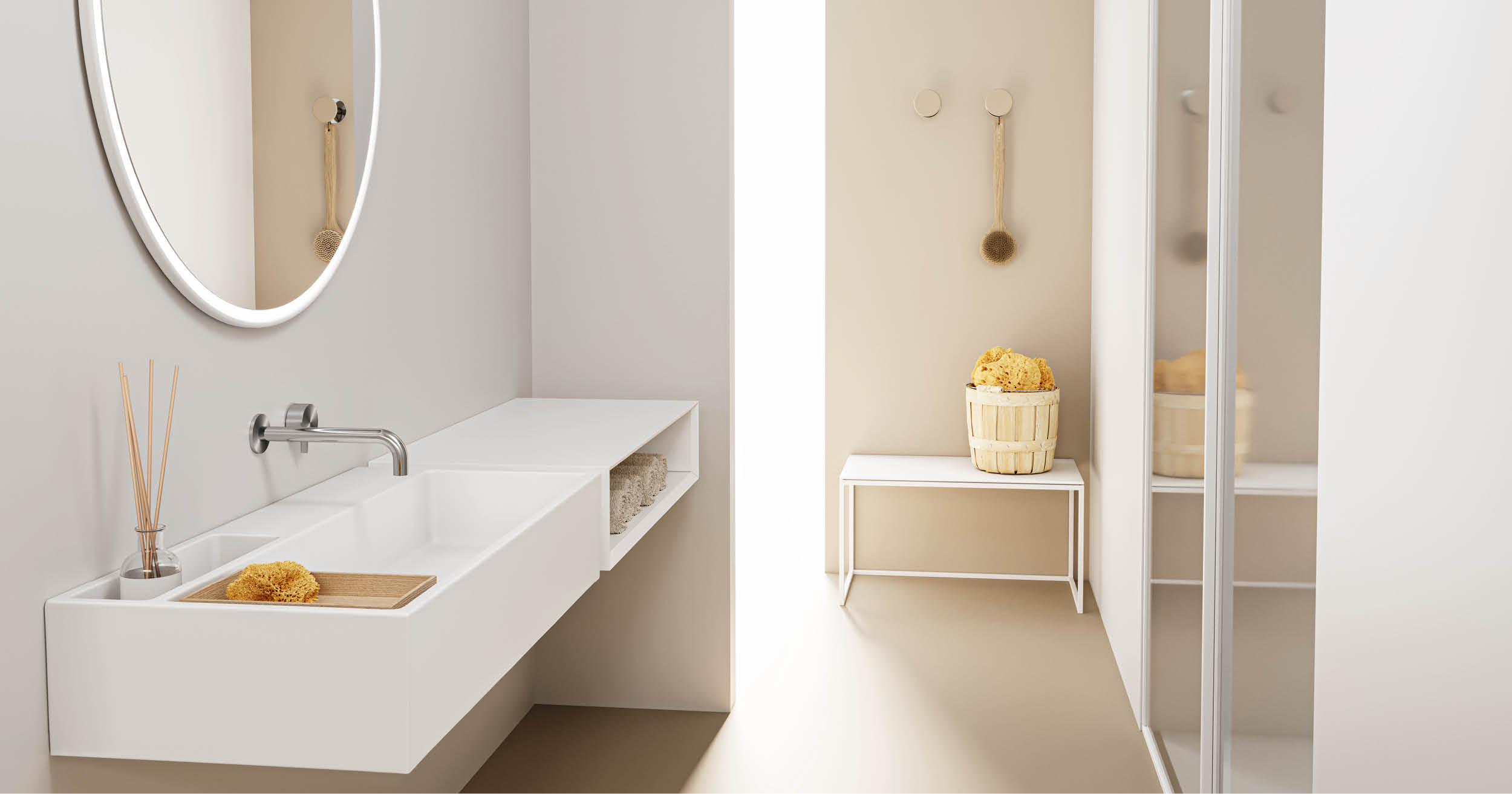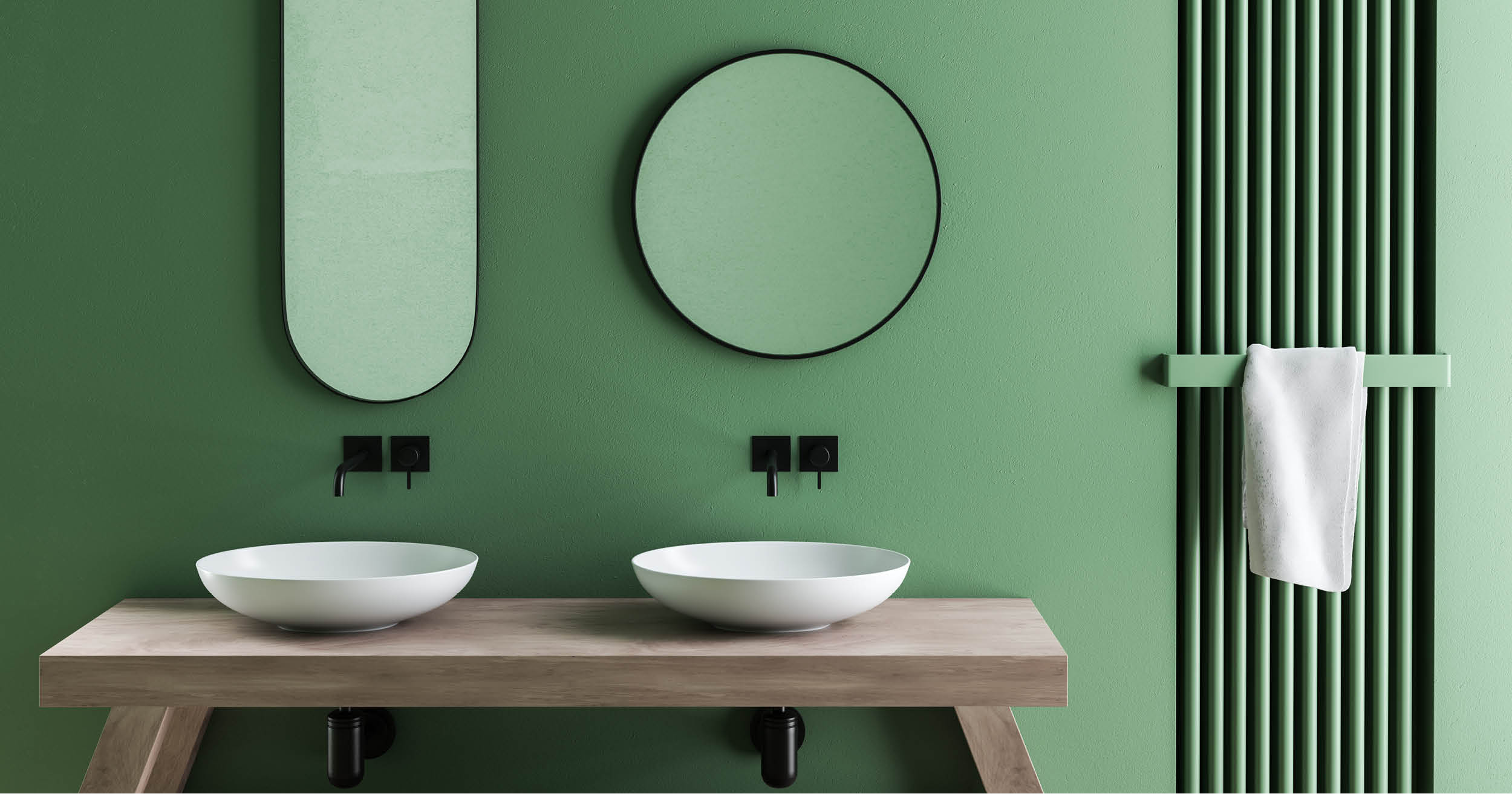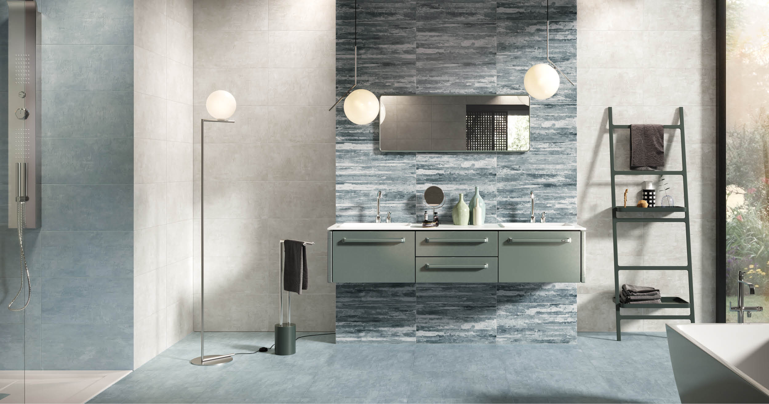 La composizione del bagno può anche partire dalla scelta cromatica che guiderà poi la cifra stilistica degli elementi d’arredo.