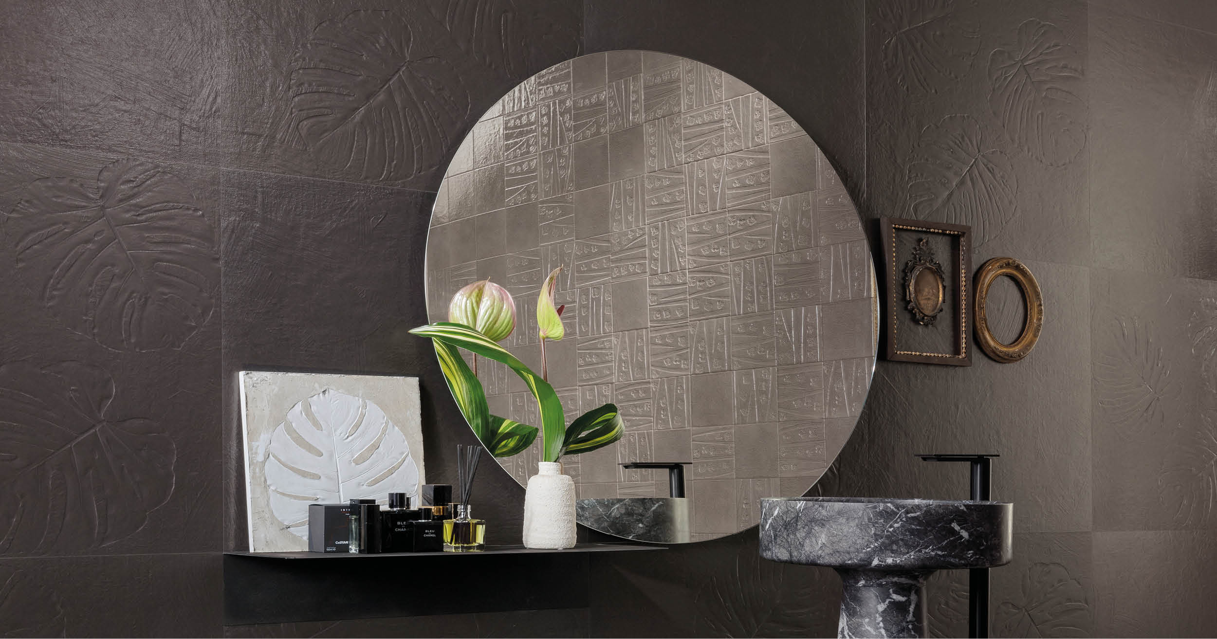 I riflessi e giochi di luce che ricrea la ceramica effetto metallo, si adattano all’arredamento essenziale, pulito e semplice. Le tonalità più scure, sono quelle che meglio evidenziano i riflessi scintillanti: applica piastrelle di piccolo formato nere o grige con dettagli in bronzo dietro la doccia, abbinale a lastre più grandi in contrasto sul resto delle pareti, oppure combinale a un mobile in legno per una resa finale dal carattere deciso che si distingue dalla massa.