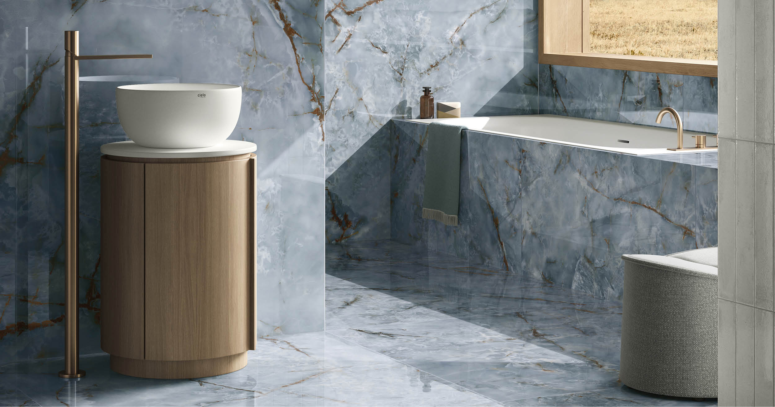 L’effetto marmo e pietra naturale sono un punto d’incontro tra decoro e minimalismo e, grazie al gres porcellanato, entrano nella stanza da bagno donandogli un’impronta unica. Un punto a favore di questa tipologia di rivestimento è l’incredibile varietà di formati disponibili con cui è possibile creare soluzioni di alto impatto visivo.